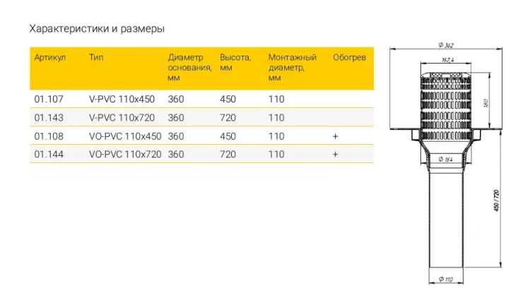 Кровельная воронка Fachmann VО-PVC 110x450 с ПВХ фартуком для приваривания к ПВХ-мембране, обогреваемая, с листоуловителем - артикул: 01.108 - материал корпуса - ПВХ, ПП - высота выпуска: 450 мм - монтажный диаметр: 110 мм - пропускная способность 8 л/c - теплоотдача кабеля: 30 Вт/м - длина кабеля: 1.5 м. - ливствоуловитель: регулируемый - срок службы: не менее 50 лет - гарантия: 1 год - применение: жилые и общественные здания, ФОКи, промышленные здания и сооружения, торговые комплексы и магазины, частные дома.
