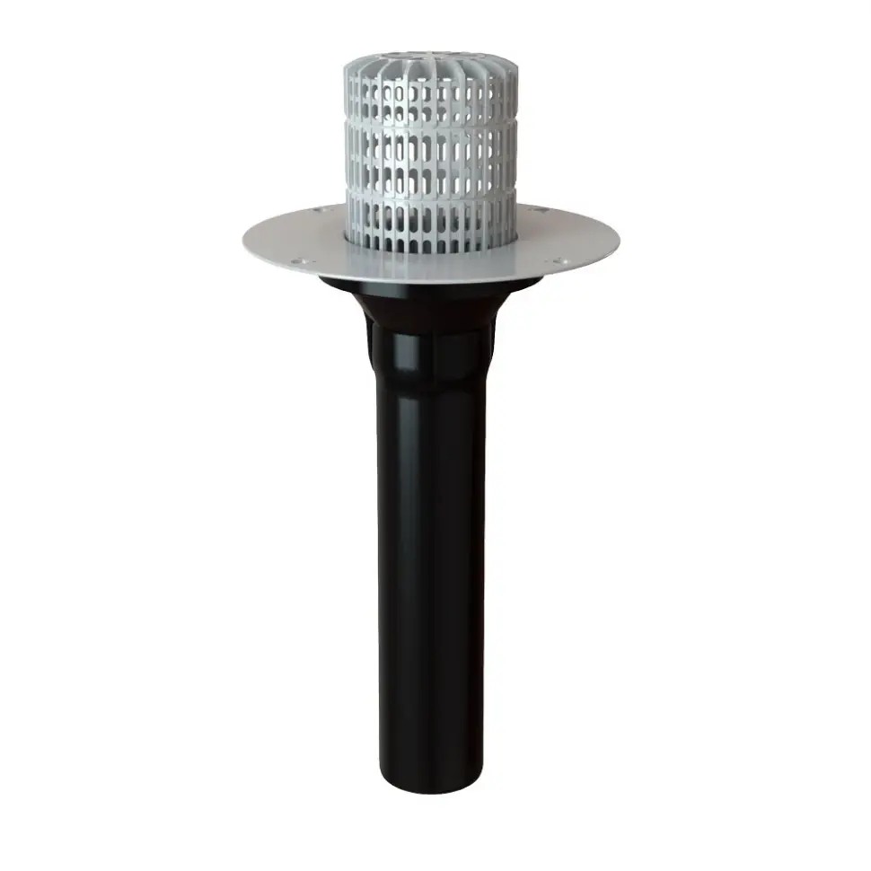 Кровельная воронка Fachmann V-PVC 110x720 с ПВХ фартуком для приваривания к ПВХ-мембране, без обогрева и листоуловителем - артикул: 01.143 - материал корпуса - ПВХ, ПП - высота выпуска: 720 мм - монтажный диаметр: 110 мм - пропускная способность 8 л/c - обогрев: нет - ливствоуловитель: регулируемый - срок службы: не менее 50 лет - гарантия: 1 год - применение: жилые и общественные здания, ФОКи, промышленные здания и сооружения, торговые комплексы и магазины, частные дома.