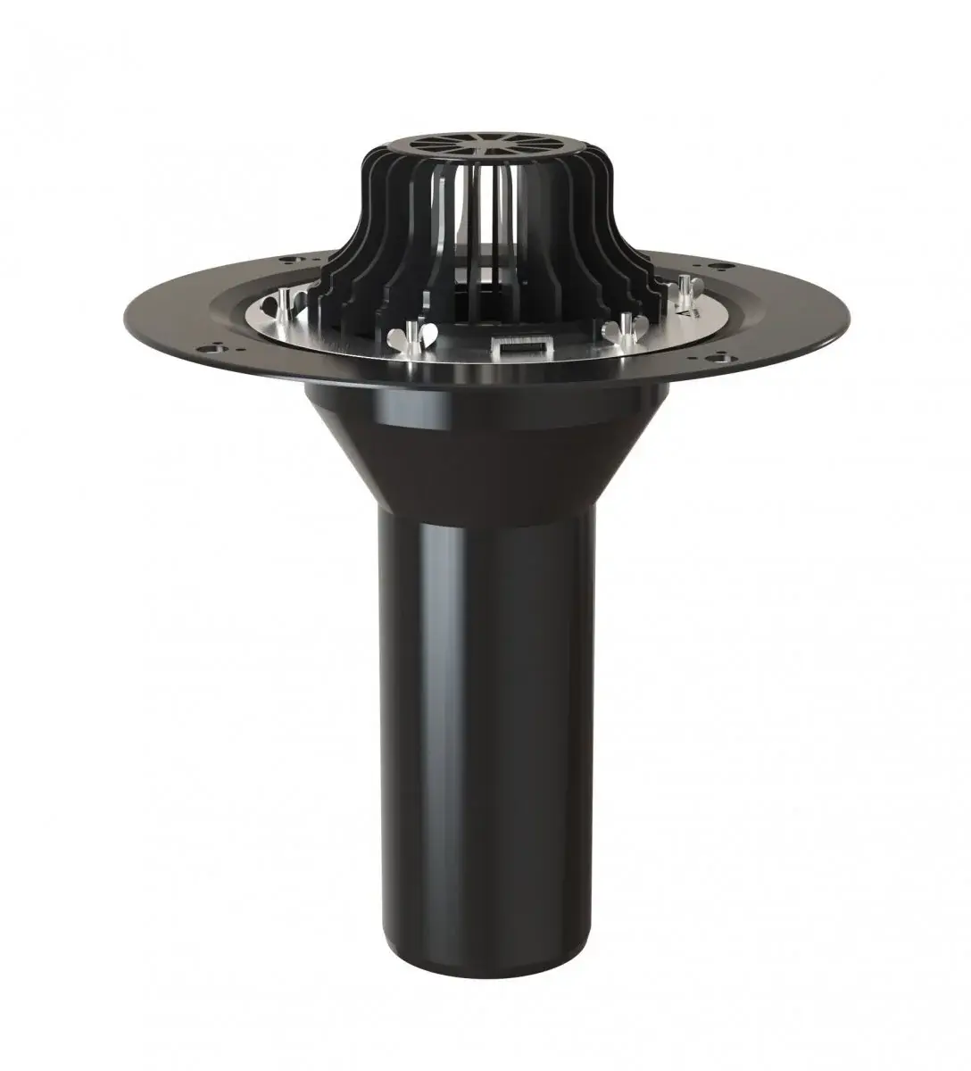 Воронка кровельная VM 110x450 (Кратно 1 шт.), с металлическим обжимным фланцем, без обогрева и листоуловителем - артикул: 01.004 - материал корпуса - морозостойкий полипропилен - высота выпуска: 450 мм - монтажный диаметр: 110 мм - пропускная способность 10.7 л/c - обогрев: нет - поставляется в коробке кратно 1 шт. - срок службы: не менее 50 лет - гарантия: 1 год - применение: жилые и общественные здания, ФОКи, промышленные здания и сооружения, торговые комплексы и магазины, частные дома..