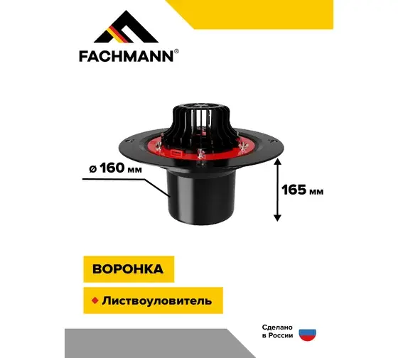 Воронка кровельная VM 160x165, с металлическим обжимным фланцем, без обогрева и листоуловителем - артикул: 01.005 - материал корпуса - морозостойкий полипропилен - высота выпуска: 165 мм - монтажный диаметр: 160 мм - пропускная способность 8 л/c - обогрев: нет - срок службы: не менее 50 лет - гарантия: 1 год - применение: жилые и общественные здания, ФОКи, промышленные здания и сооружения, торговые комплексы и магазины, частные дома.