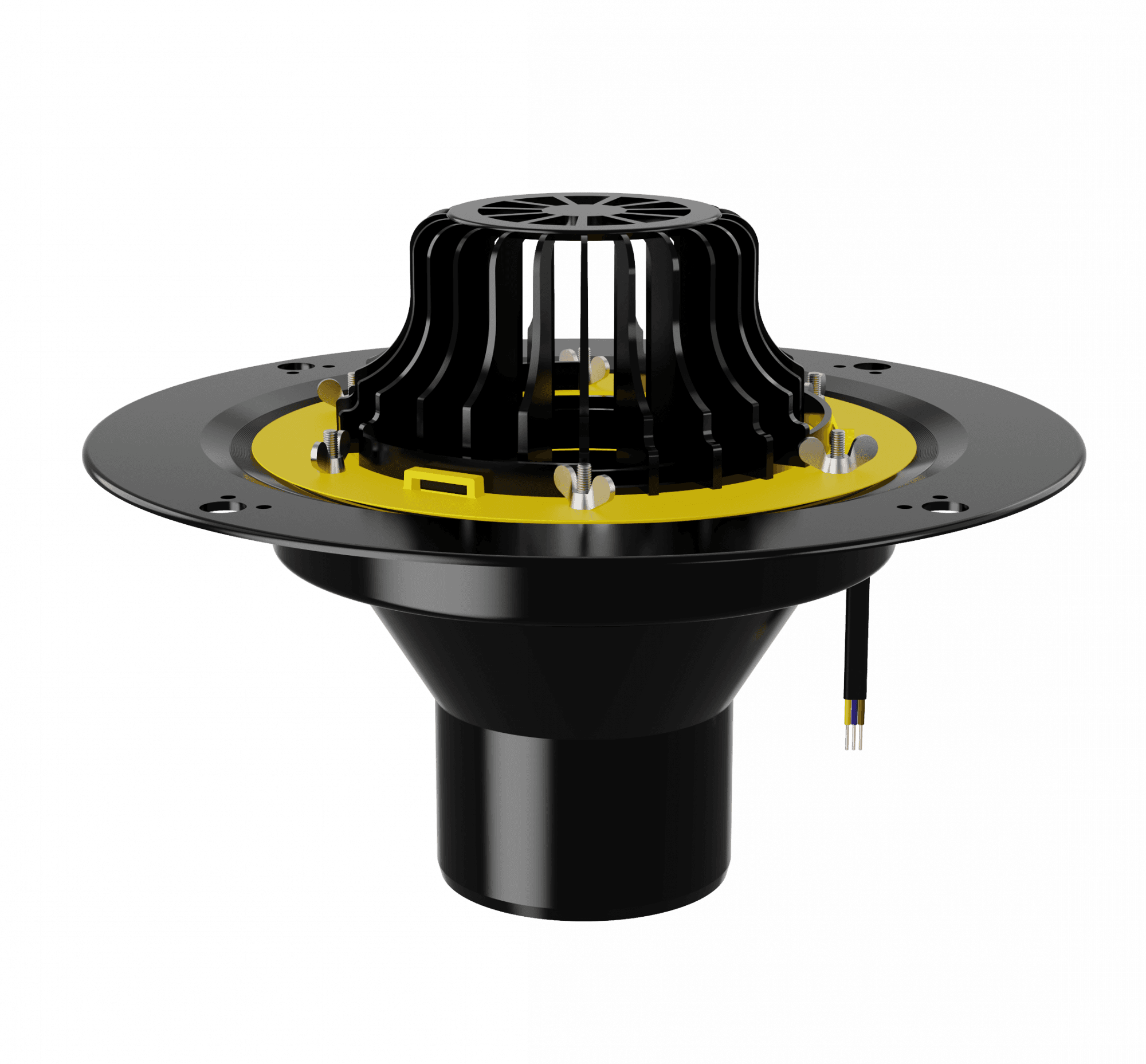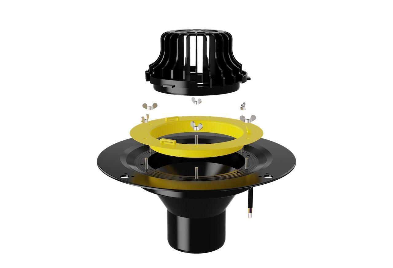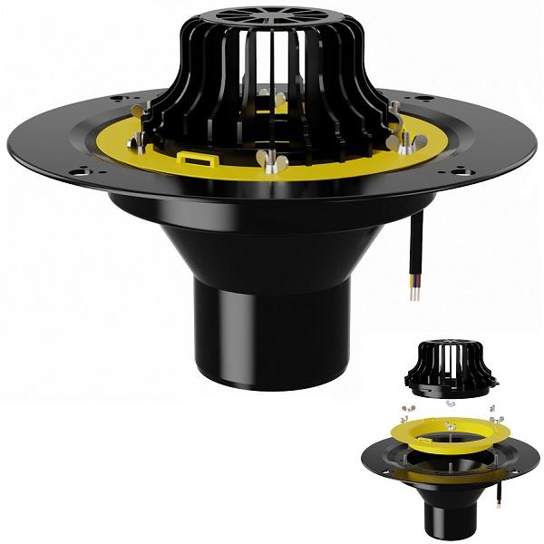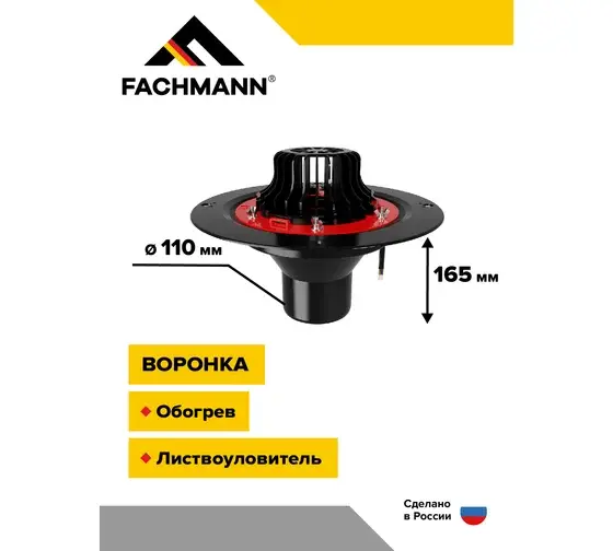 Воронка кровельная VMО 110x165, с металлическим обжимным фланцем, с обогревов и листоуловителем - артикул: 01.011 - материал корпуса - морозостойкий полипропилен - высота выпуска: 165 мм - монтажный диаметр: 110 мм - пропускная способность 8 л/c - теплоотдача кабеля - 30 Вт/м - длина кабеля - 1.5 м. - срок службы: не менее 50 лет - гарантия: 1 год - применение: жилые и общественные здания, ФОКи, промышленные здания и сооружения, торговые комплексы и магазины, частные дома.
