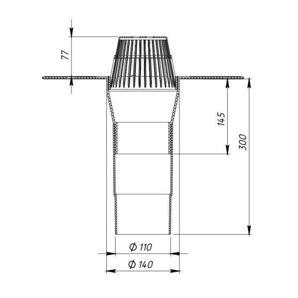 Воронка для битумных кровель Fachmann V110 х 140, с битумным фланцем и листоуловителем, без обогрева - артикул: 01.001 - монтажный диаметр 110 мм - высота выпуска 140 мм - пропускная способность 7,8 л/c - материал корпуса - морозостойкий полимер - обогрев: нет - для битумно - полимерной кровли - срок службы: не менее 50 лет - гарантия: 1 год - применение: жилые и общественные здания, ФОКи, промышленные здания и сооружения, торговые комплексы и магазины, частные дома.