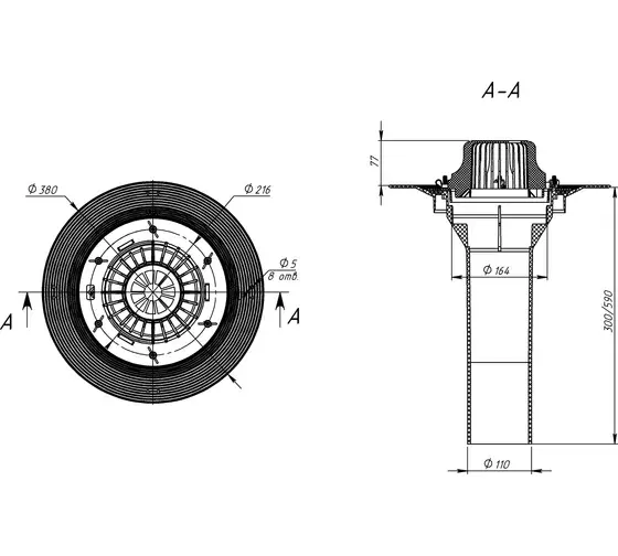 Воронка битумная VM-Pro 160x590, листвоуловителем и обжимным фланцем, закладным элементом, без обогрева - артикул: 01.175 - материал корпуса - морозостойкий полипропилен - высота выпуска: 590 мм - монтажный диаметр: 160 мм - пропускная способность 8 л/c - обогрев: нет - для битумно - полимерной кровли - срок службы: не менее 50 лет - гарантия: 1 год - применение: жилые и общественные здания, ФОКи, промышленные здания и сооружения, торговые комплексы и магазины, частные дома.