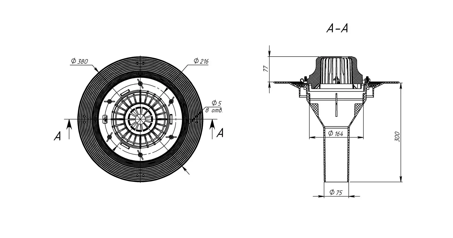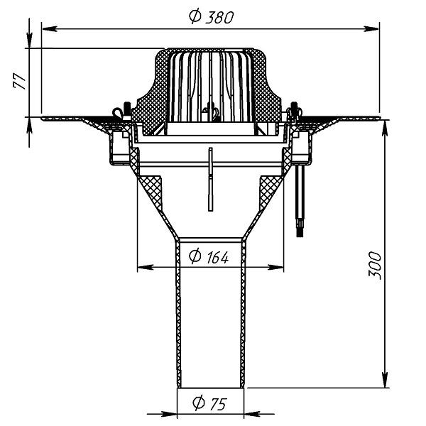 Воронка битумная VM-Pro 75x300, листвоуловителем и обжимным фланцем, закладным элементом, без обогрева - артикул: 01.172 - материал корпуса - морозостойкий полипропилен - высота выпуска: 300мм - монтажный диаметр: 75мм - пропускная способность 8л/c - обогрев: нет - для битумно - полимерной кровли - срок службы: не менее 50 лет - гарантия: 1 год - применение: жилые и общественные здания, ФОКи, промышленные здания и сооружения, торговые комплексы и магазины, частные дома.